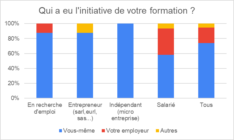 Et plus ils sont « indépendants » (indépendants et entrepreneurs), ultimement le chercheur d’emploi, et plus ils sont à l’initiative de leur formation.
