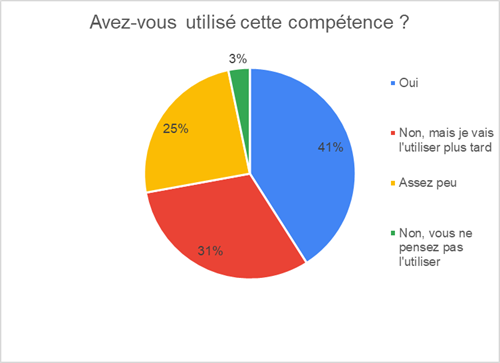 41% des apprenants ont déjà utilisé cette compétence à la suite de leur formation et 31% ont l’intention de le faire plus tard.