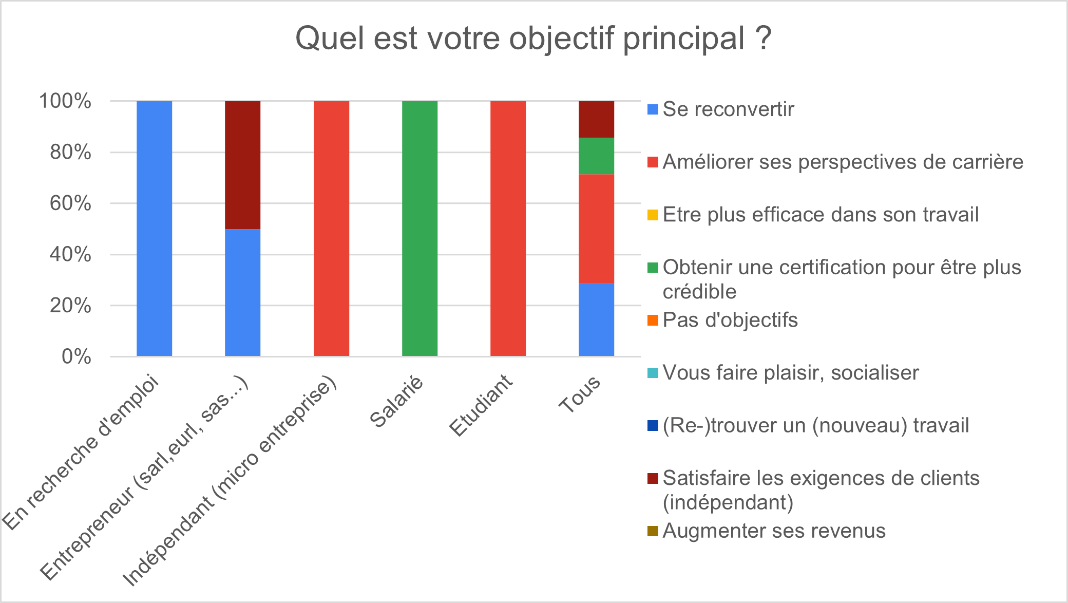 Majoritairement, l’objectif est l’amélioration des perspectives de carrière suivi par un projet de reconversion.