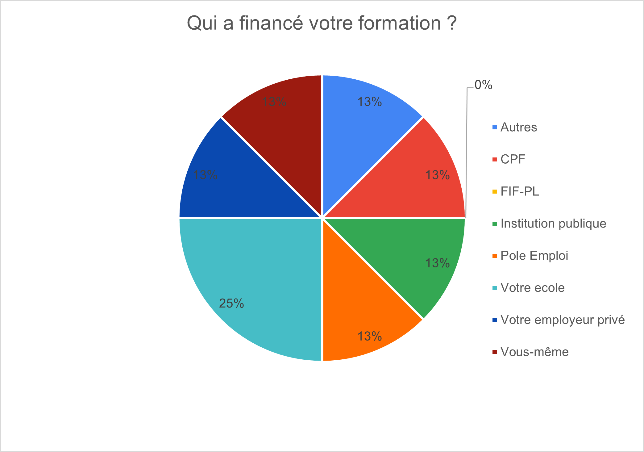 13% ont auto-financé leur formation tandis que 13% ont bénéficié d’un financement de leur employeur.